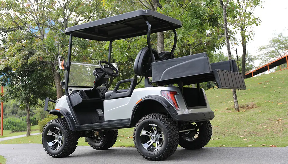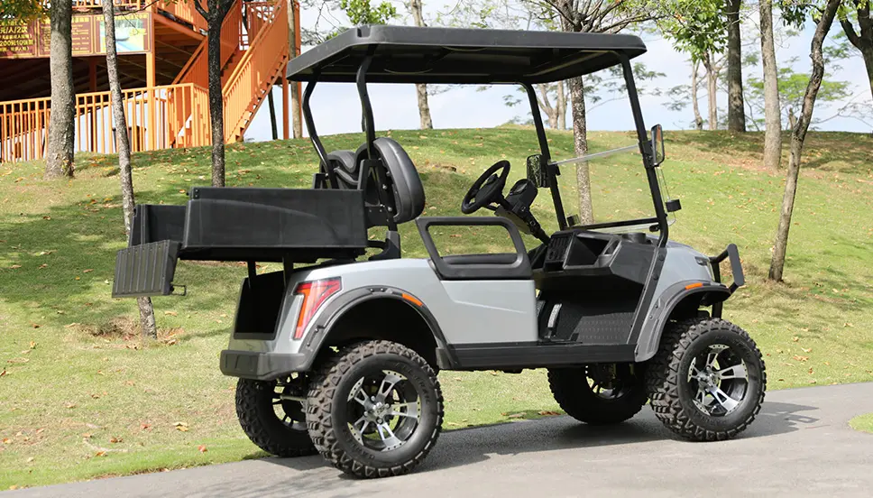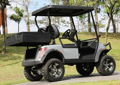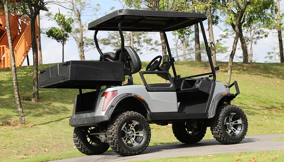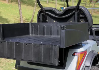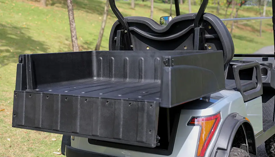 Heavy duty thermoplastic utility box converts a golf cart to an OEM style utility vehicle. Rugged textured cargo bed with enormoususable dimensions . Features fixed bed with flush folding tailgate for easy loading and unloading. Great for agricultural and industrial applications as well as everyday hauling.