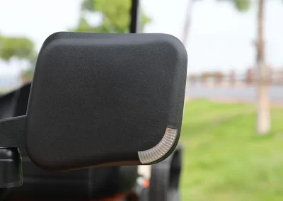 With a joint that runs horizontally on the middle of the Fold-down windshield glass. You can fold the windscreen down to allow it to circulate. Easy fold the windshield down when you want an open-air experience, and raise it for protection from rain, wind, and other elements.Crafted from impact-resistant materials,Experience better visibility on the golf course, nature trail, or when cruising on the road. Provides a clear line of sight for safe and more enjoyable rides.